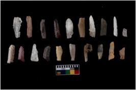 | Description / विवरण | There are n 20 Flake tool; There are multidirectional irregular scar pattern on them. few have blunt edges, Some of them are tapering at one end. |