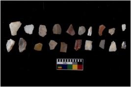 | Description / विवरण | Specimen of flakes tool with prominent flaking marks. It made up of a short flakes with sides trimmed. |