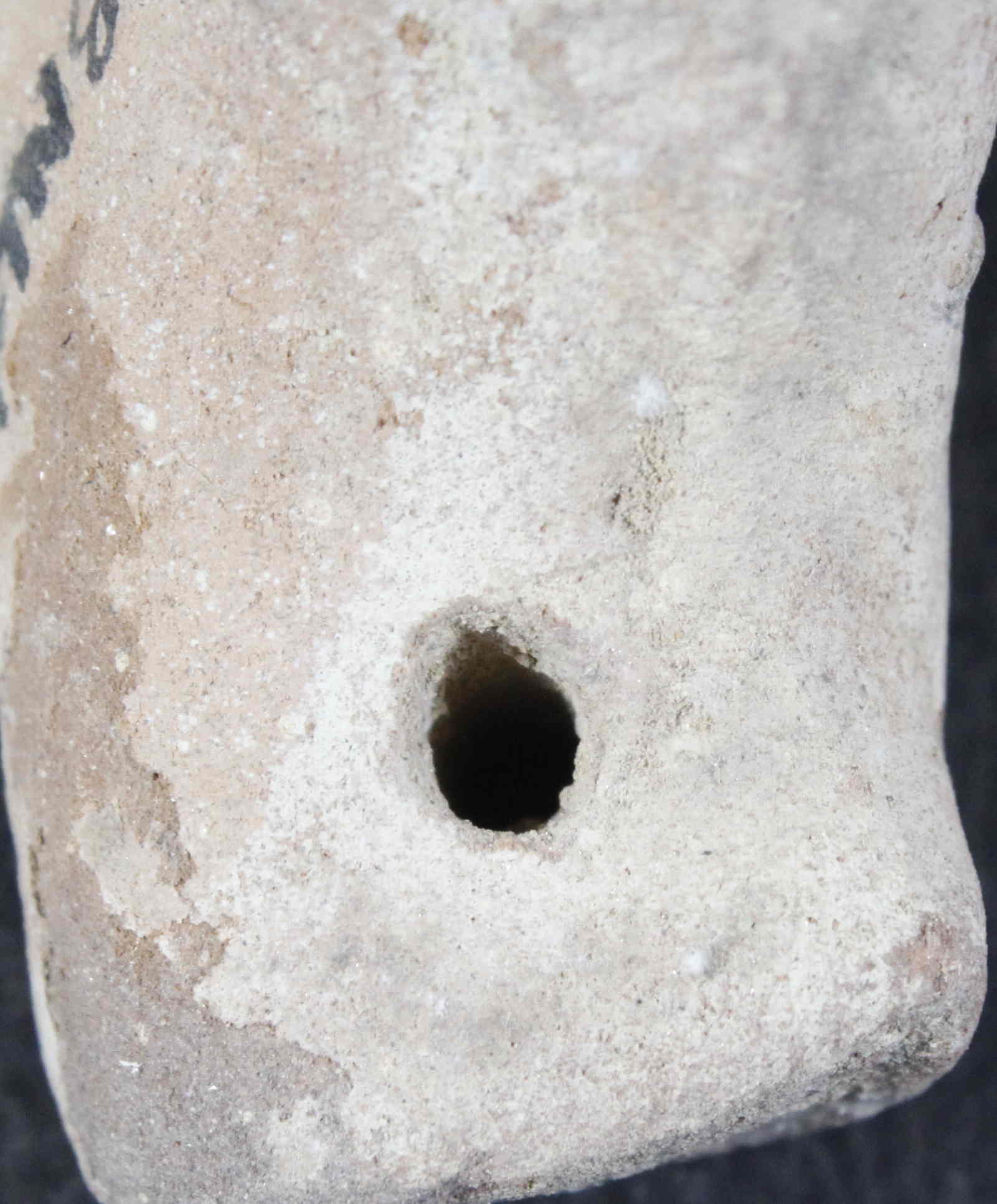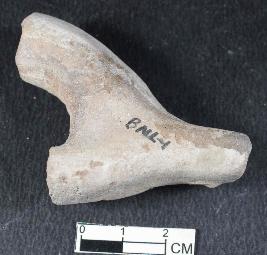 A fragment of a plough showing perforation. Its colour is dull red and surface is rough.