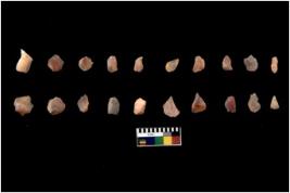 | Description / विवरण | Specimen of chips with prominent flaking marks. It made up of a short flakes with sides trimmed. |