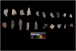 | Description / विवरण | Specimen of flakes tool with prominent flaking marks. It made up of a short flakes with sides trimmed. |