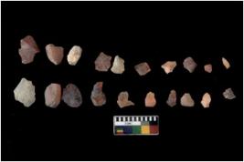 | Description / विवरण | Specimen of flakes Chips with prominent flaking marks. It made up of a short flakes with sides trimmed. |