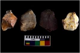 | Description / विवरण | There are n 04 objects; three are with sharp edges, blade removing marks are visible. All are almost in same size. |