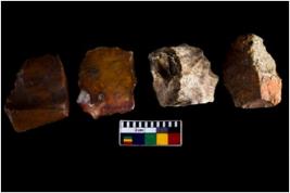 | Description / विवरण | There are n 04 objects; two are flake core. All are with sharp edges. Cut marks are visible. |