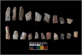 | Description / विवरण | There are n 20 flakes tool; there are multidirectional irregular scar pattern on them; made of short flakes and few have tapering edges. |