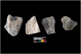 | Description / विवरण | There are n 4 flakes tool; there are multidirectional irregular scar pattern on them; made of short flakes and all four have tapering edges. |