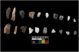 | Description / विवरण | Specimen of flakes tool with prominent flaking marks. It made up of a short flakes with sides trimmed. |