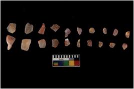 | Description / विवरण | Specimen of flakes Chips with prominent flaking marks. It made up of a short flakes with sides trimmed. |