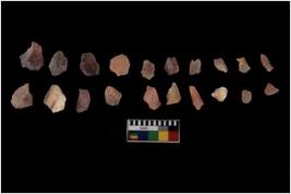 | Description / विवरण | Specimen of flakes Chips with prominent flaking marks. It made up of a short flakes with sides trimmed. |