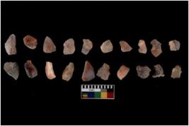| Description / विवरण | Specimen of flakes Chips with prominent flaking marks. It made up of a short flakes with sides trimmed. |