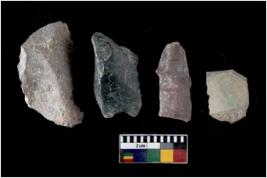 | Description / विवरण | There are n 4 flakes tool; there are multidirectional irregular scar pattern on them; made of short flakes and all four have tapering edges. |
