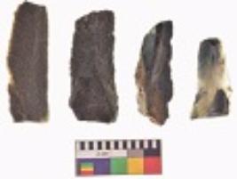 | Description / विवरण | There are n 4 utilized flake cores. Out of them three are made up of Chert and one is made up of Chalcedony. There are multi directional irregular scar pattern on both dorsal and ventral face of the flake cores. Three are tapering at one end and one has sharp edge. |