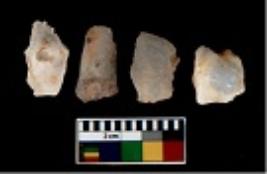 | Description / विवरण | There are n 4 utilized flake cores.There are multi directional irregular scar pattern on them. Two are tapering at one end and two have blunted edges. |