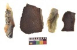 | Description / विवरण | There are n 4 utilized flake cores. Out of them two are made up of Chert and two are made up of Chalcedony. There are multi directional irregular scar pattern on both dorsal and ventral face of the flake cores. One has sharp edge and three have blunted edges. |