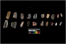 | Description / विवरण | Specimen of flakes tool with prominent flaking marks. It made up of a short flakes with sides trimmed. |