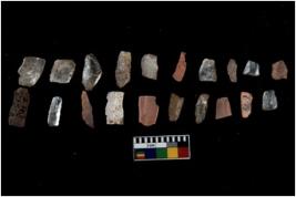 | Description / विवरण | There are n 20 Flake tool; There are multidirectional irregular scar pattern on them. few have blunt edges, Some of them are tapering at one end. |