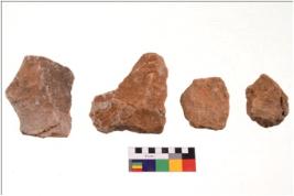 | Description / विवरण | There are n 4 flakes; there are multidirectional irregular scar pattern on them; made of short flakes and all four have blunted edges. |