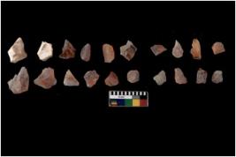 | Description / विवरण | Specimen of flakes Chips with prominent flaking marks. It made up of a short flakes with sides trimmed. |