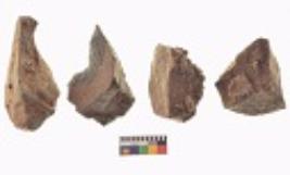 | Description / विवरण | There are n 4 utilized flake cores. There are multi directional irregular scar pattern on both dorsal and ventral face of the flake cores. One has sharp edge and three have blunted edges. |