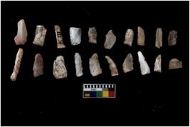 | Description / विवरण | There are n 20 flakes tool; there are multidirectional irregular scar pattern on them; made of short flakes and few have tapering edges. |