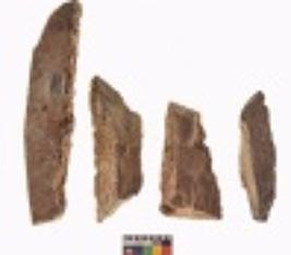 | Description / विवरण | There are n 4 utilized flake cores. There are multi directional irregular scar pattern on both dorsal and ventral face of the flake cores. Two are tapering at one end and two have sharp edges. |