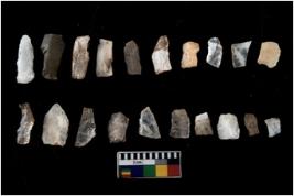 | Description / विवरण | There are n 20 flakes tool; there are multidirectional irregular scar pattern on them; made of short flakes and few have tapering edges. |