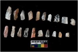 | Description / विवरण | There are n 20 Flake tool; There are multidirectional irregular scar pattern on them. Some of them are tapering at one end, few have pointed functional top. |