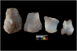 | Description / विवरण | There are n 4 flakes tool; there are large flakes with sides trimmed, Marks of secondary flaking are present on the both the faces. The dorsal is relatively flat. |