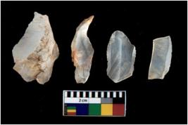 | Description / विवरण | There are n 04 flakes and core ; two of them are tapering at one end. All of them are having sharp edges. |