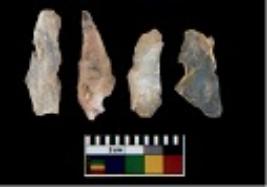 | Description / विवरण | There are n 4 utilized flake cores.There are multi directional irregular scar pattern on them. Three are tapering at one end and one has sharp edge. |