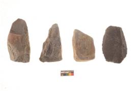 | Description / विवरण | There are n 4 flakes tool; there are flakes tool with prominent flaking marks. It made up of a large flakes with sides trimmed. |
