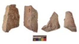 | Description / विवरण | There are n 4 utilized flake cores. There are multi directional irregular scar pattern on both dorsal and ventral face of the flake cores. Two have blunted edges and two have flat base. |
