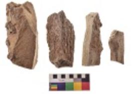 | Description / विवरण | There are n 4 utilized flake cores. There are multi directional irregular scar pattern on both dorsal and ventral face of the flake cores. Three are tapering at one end and one has sharp edge. |