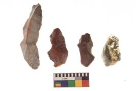| Description / विवरण | There are n-04 objects; among them one has chalcedony, and three have chert, some of them have sharp edges, and few have blunted edges. |