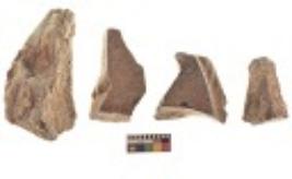 | Description / विवरण | There are n 4 utilized flake cores. There are multi directional irregular scar pattern on both dorsal and ventral face of the flake cores. One is tapering at one and three have blunted edges. |