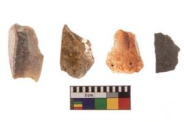 | Description / विवरण | There are n-04 objects; among them three have chalcedony, and one has chert, some of them have sharp edges, and few have blunted edges. |