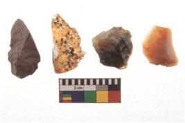 | Description / विवरण | There are n-04 objects; among them three have chalcedony, and one has chert, some of them have tapering edges, and few have rounded edges. |