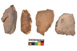 | Description / विवरण | There are n 4 utilized flakes. There are multi directional irregular scar pattern on both dorsal and ventral face of the flakes. One has flat base and three have blunted edges. |