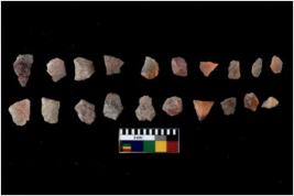 | Description / विवरण | Specimen of flakes Chips with prominent flaking marks. It made up of a short flakes with sides trimmed. |
