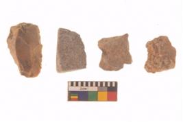 | Description / विवरण | There are n 4 flakes tool; there are flakes tool with prominent flaking marks. It made up of a large flakes with sides trimmed. |