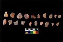 | Description / विवरण | Specimen of flakes Chips with prominent flaking marks. It made up of a short flakes with sides trimmed. |