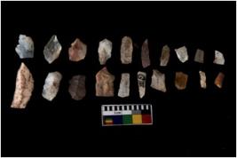| Description / विवरण | There are n 20 Flake tool; There are multidirectional irregular scar pattern on them. few have blunt edges, Some of them are tapering at one end. |