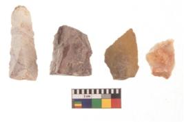 | Description / विवरण | There are n-04 objects; among them one has chalcedony, and three have chert, some of them have sharp edges, and few have blunted edges. |