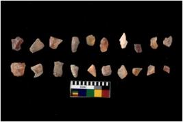 | Description / विवरण | Specimen of flakes Chips with prominent flaking marks. It made up of a short flakes with sides trimmed. |