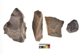 | Description / विवरण | There are n 4 utilized flakes. There are multi directional irregular scar pattern on both dorsal and ventral face of the flakes. Three are tapering at one end and one is sharp edges. |
