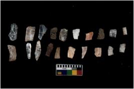 | Description / विवरण | Specimen of flakes tool with prominent flaking marks. It made up of a short flakes with sides trimmed. |