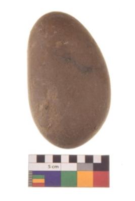 | Description / विवरण | Specimen of a oval shaped hammer stone with battered surface. |
