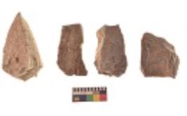 | Description / विवरण | There are n 4 utilized flake cores. There are multi directional irregular scar pattern on both dorsal and ventral face of the flake cores. One has sharp edge and three have blunted edges. |