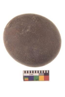 | Description / विवरण | Specimen of a spherical shaped hammer stone with battered surface. |