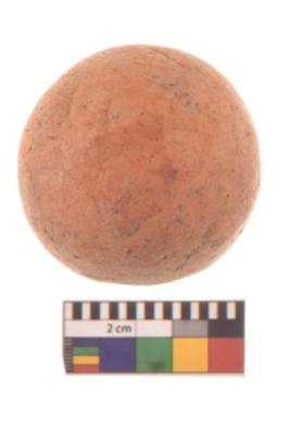 | Description / विवरण | Specimen of a spherical shaped hammer stone with battered surface. |